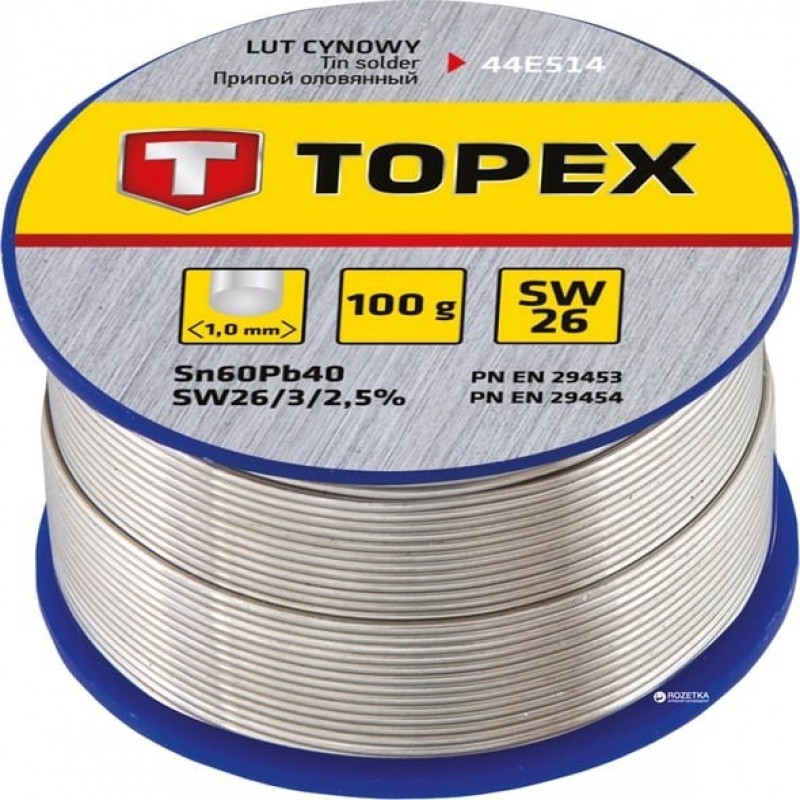 Припій (люта) TOPEX 60% олова 1 мм 100 г (44E514)